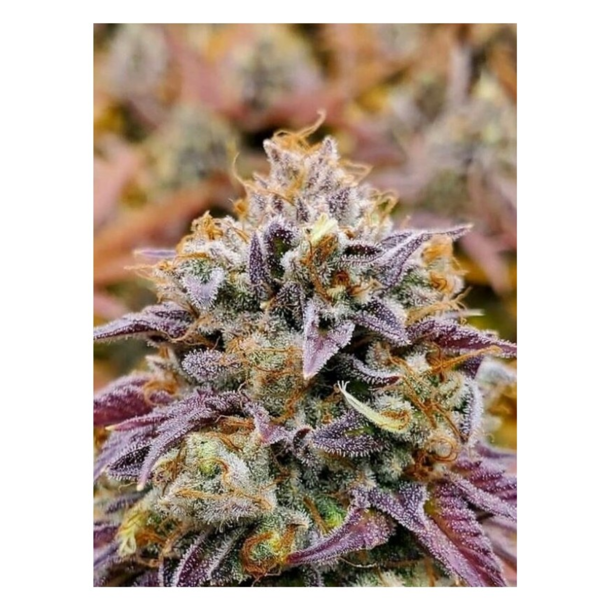 El resultado de esta combinación de genéticas nos ofrece un espectacular híbrido con una tendencia más indica y desconocida hasta el momento. Estos preciosos ejemplares nos ofrecen, un cogollo de un color verde oscuro con toques violetas que está realmente cubierto de tricomas y cristales. Es una pepita increíblemente densa con pistilos marrones entrelazados por todas partes.