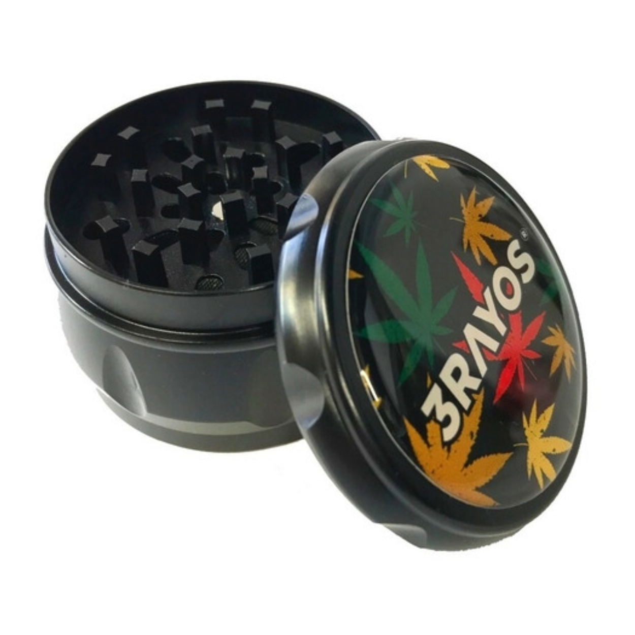 Sus 4 piezas completas incluyen cámara de triturado, recolector y compartimento polinizador. El diseño con hoja de cannabis lo convierte en un accesorio representativo de la cultura del cultivo.