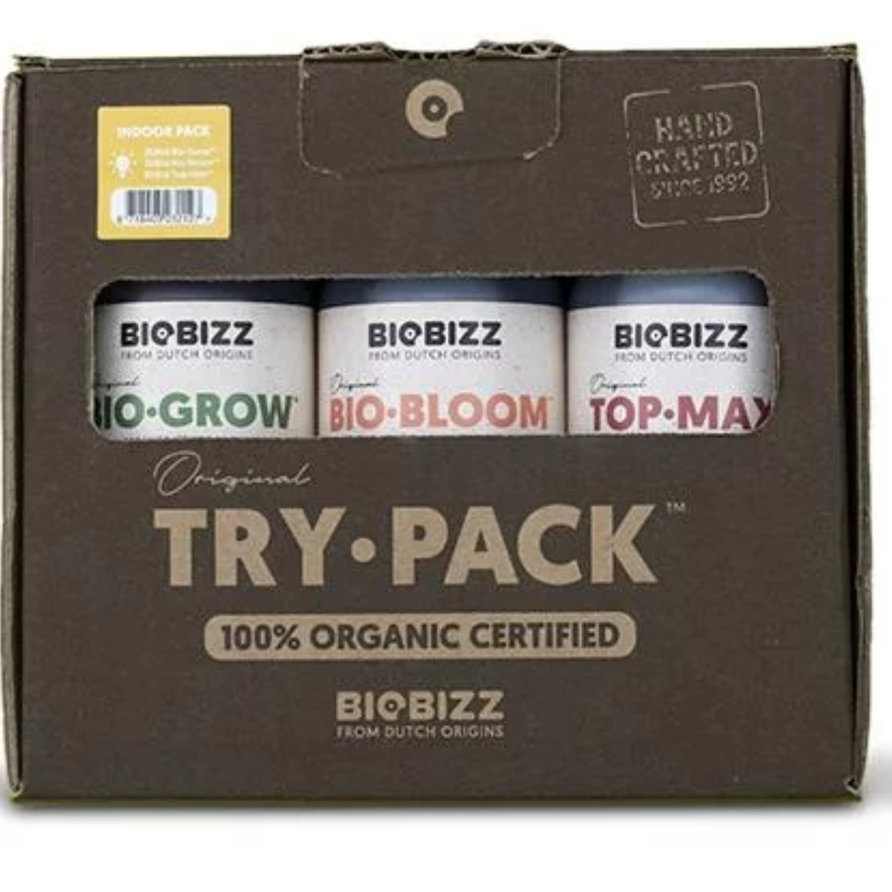 Si te seduce la idea del cultivo en interior pero no estás seguro de por dónde empezar, prueba el Try·Pack Indoor de Biobizz. Es uno de los cuatro miembros de nuestra familia Try·Pack y facilita la adquisición de experiencia utilizando la gama Biobizz de fertilizantes 100% orgánicos.